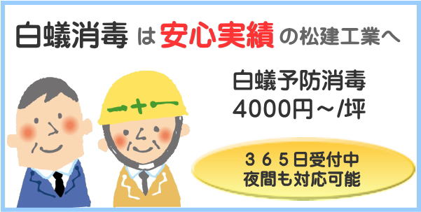 | 倉庫など小規模な白アリ消毒 | ¥8000〜 |